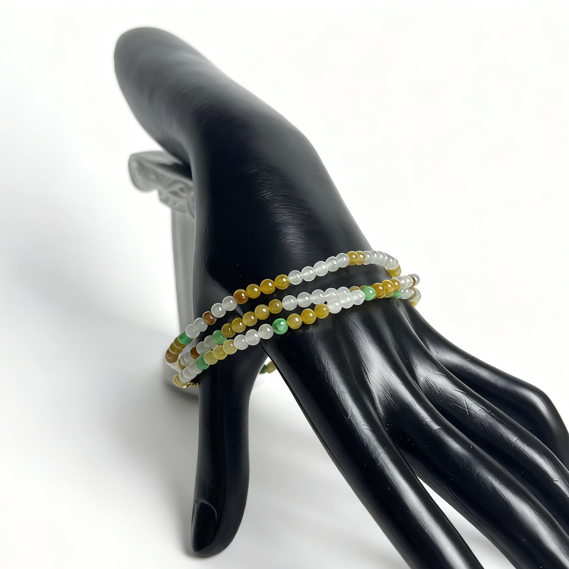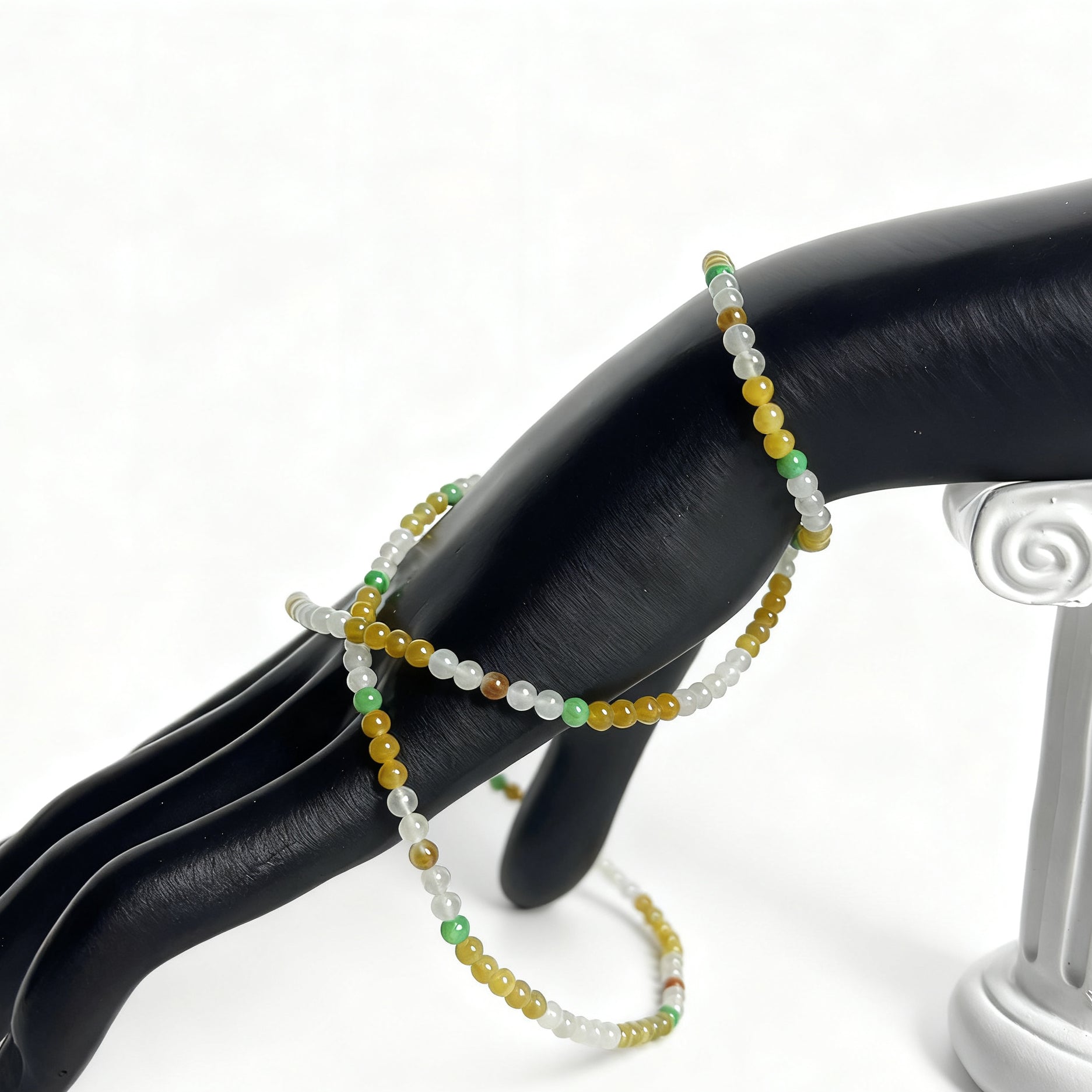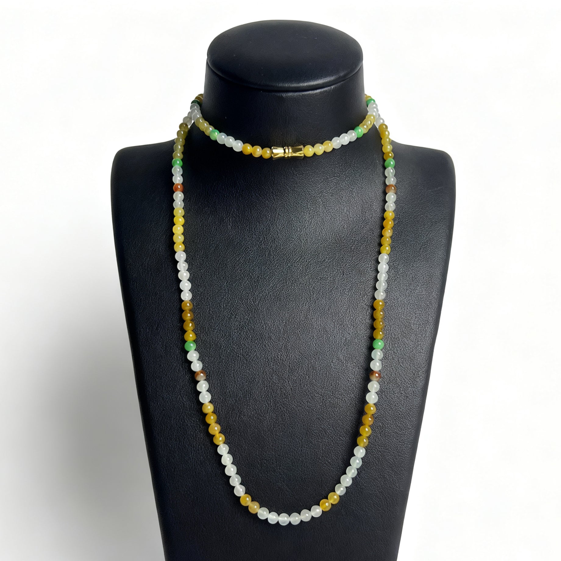 A masterpiece of color and balance — featuring jadeite beads in green, white, amber & red tones — the Celestial Harmony Necklace embodies diversity and unity. Whether worn long or layered, it instantly brightens your aura with an artistic, luxurious touch.