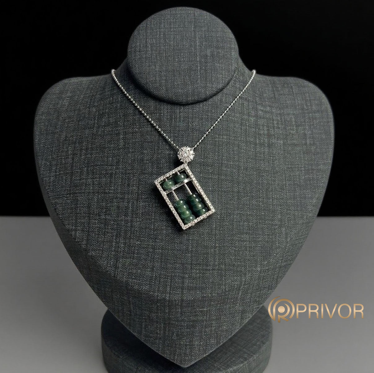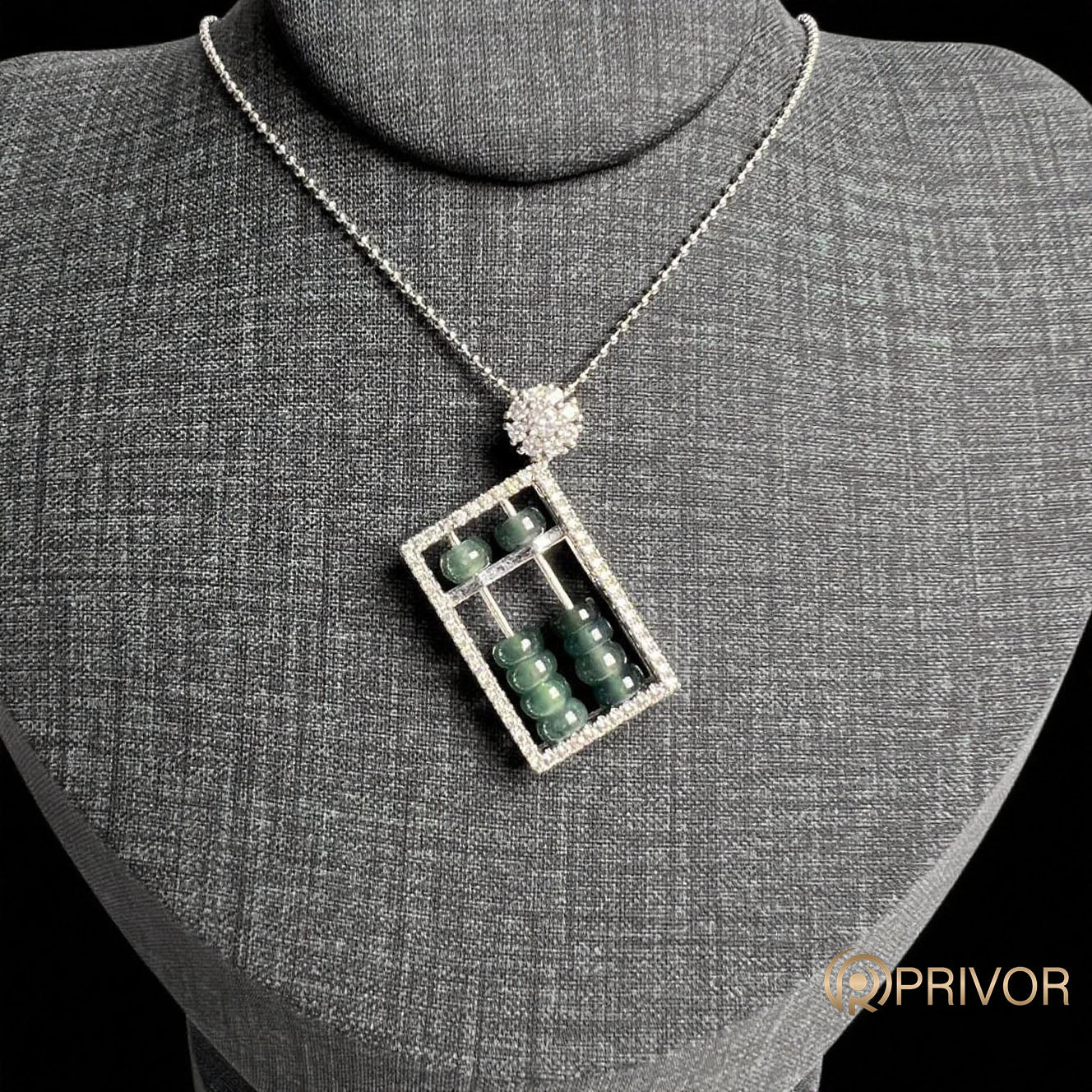 Edgy and refined, this sleek rectangular pendant layers deep green jadeite bars within a dazzling zircon frame—a structured beauty for modern icons.
