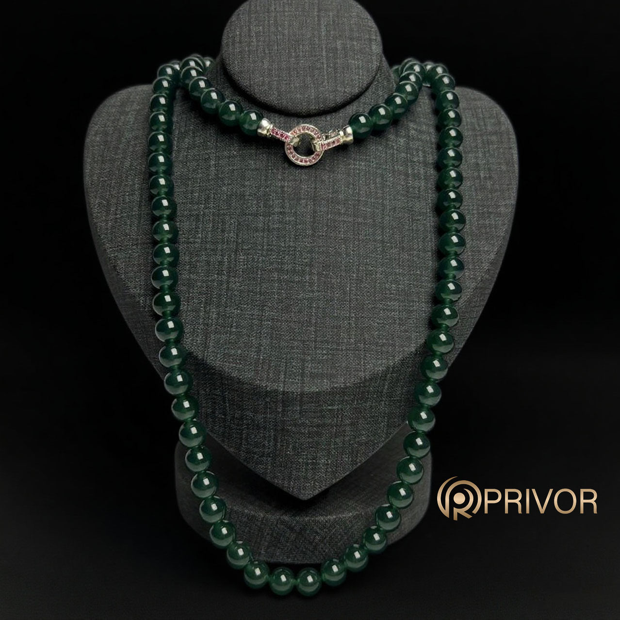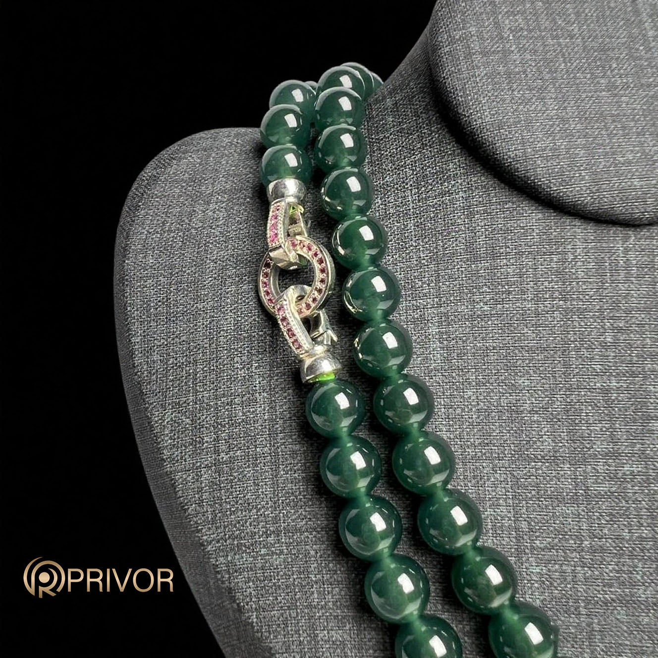 A commanding statement of prestige - This necklace features intensely saturated 90pcs of green jadeite beads, polish to a lustrous sheen and strung with perfect rhythm. A piece that evokes the grace of royalty and the confidence of modern luxury.