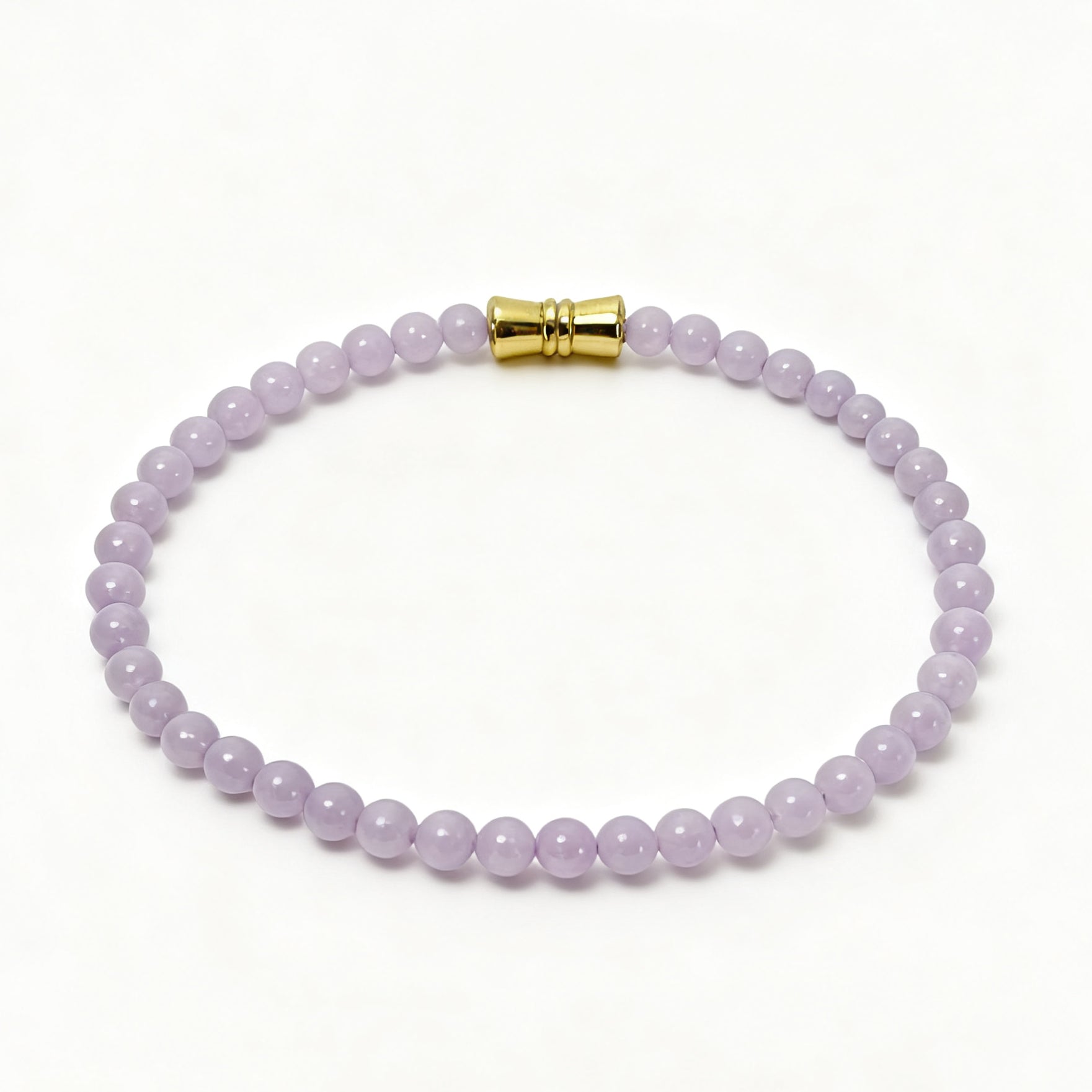 Soft lavender jadeite brings a dreamy, feminine allure to the Lilac Bloom Bracelet. Its smooth texture and delicate tone exude sophistication, pairing perfectly with gold accents or neutral fashion — a true whisper of elegance around your wrist.