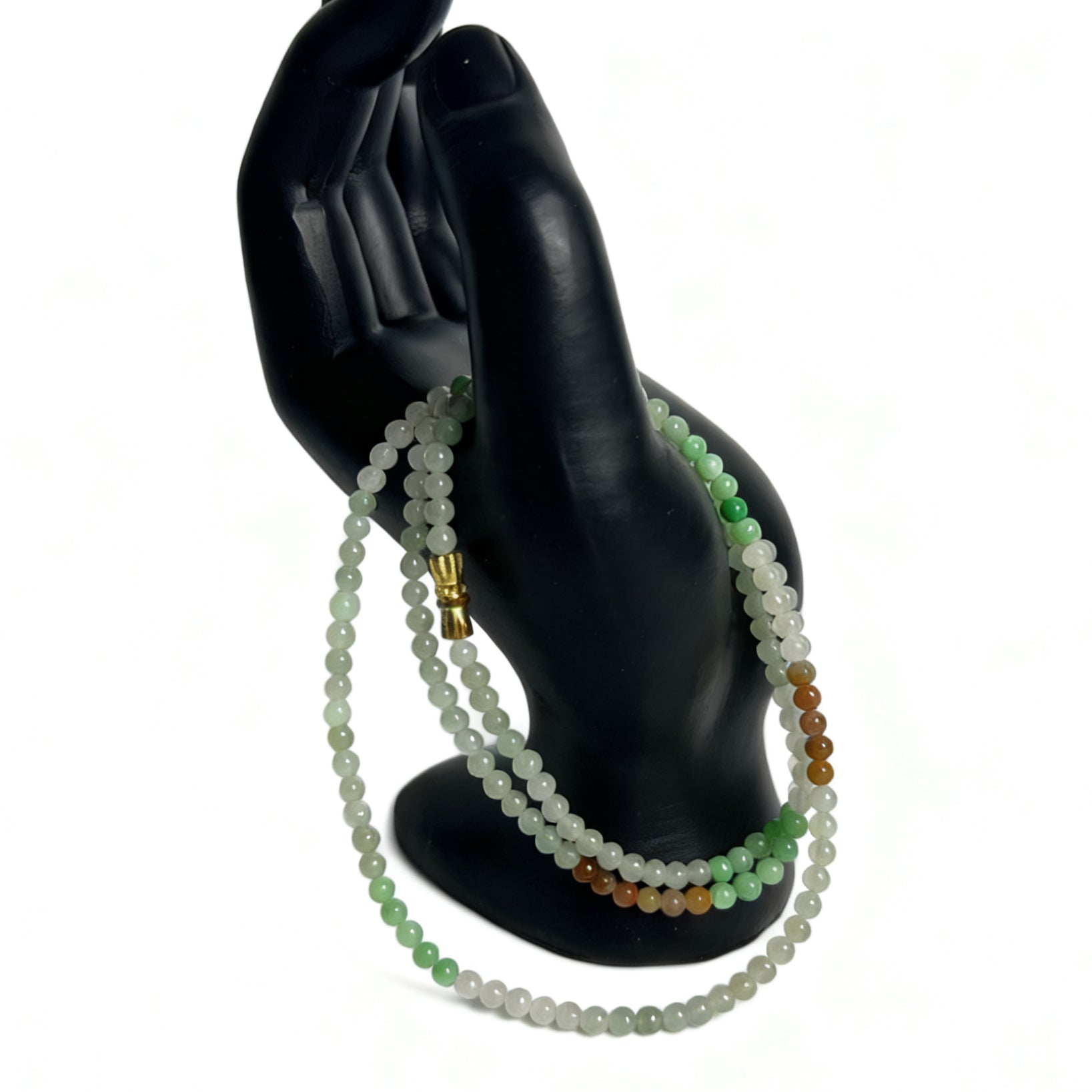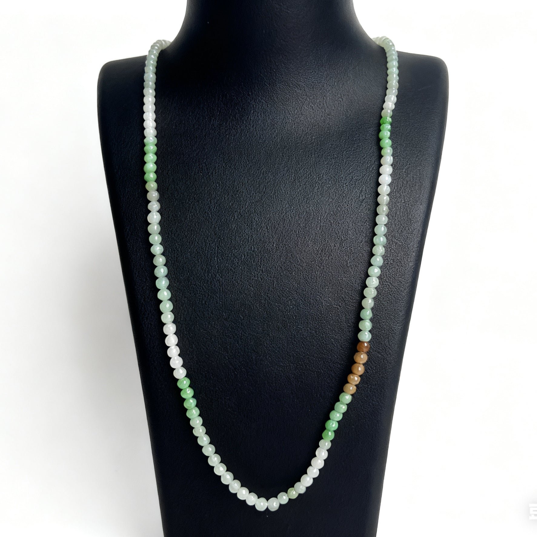 The Misty Horizon Necklace features gradient jadeite beads in soft white and mint green, flowing like morning mist over tranquil hills. Lightweight and endlessly versatile, this piece brightens your neckline with a cool, refreshing glow — perfect for adding quiet sophistication to any modern ensemble.